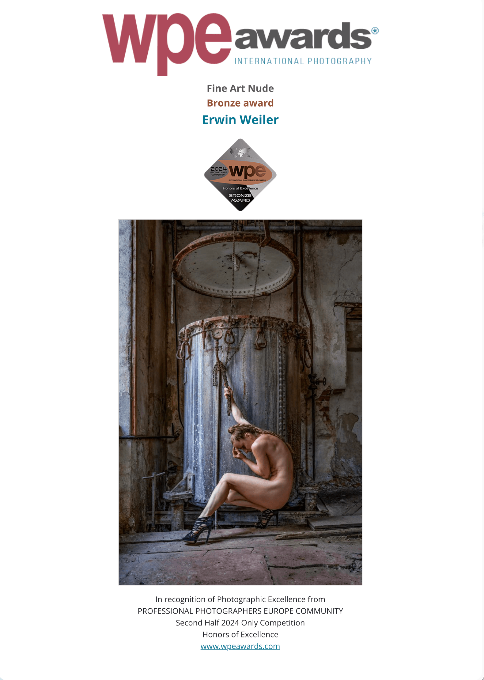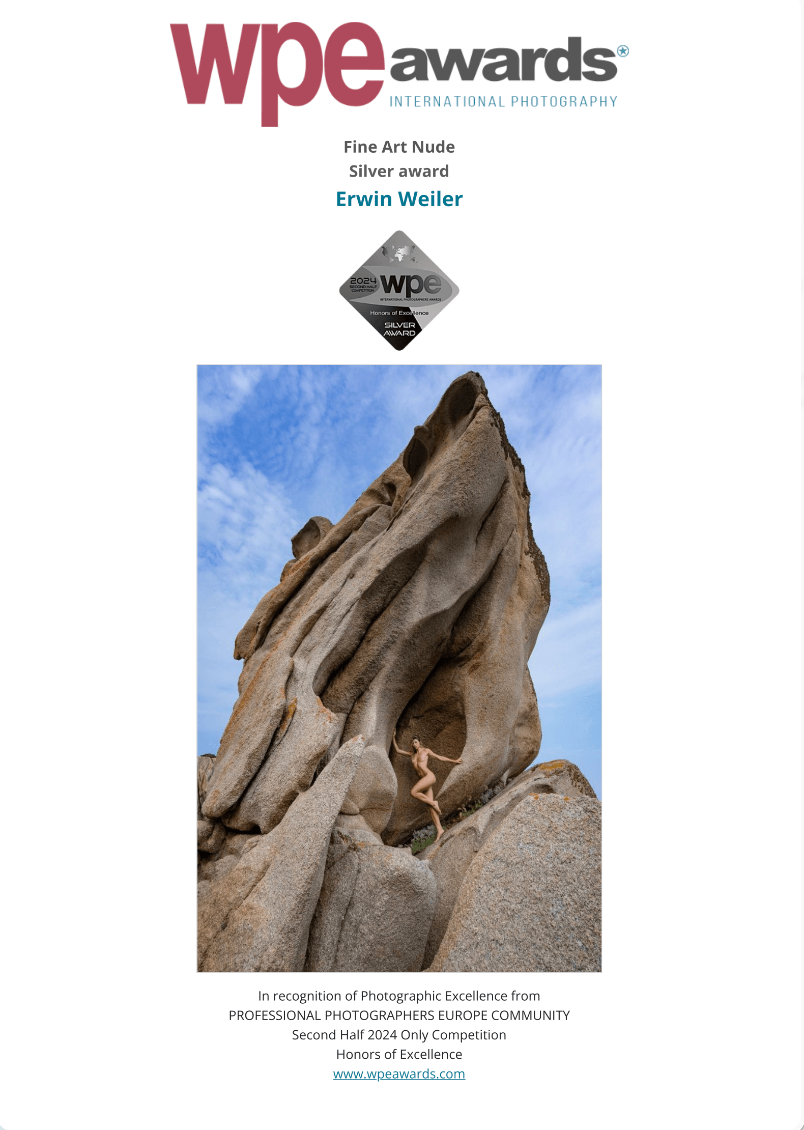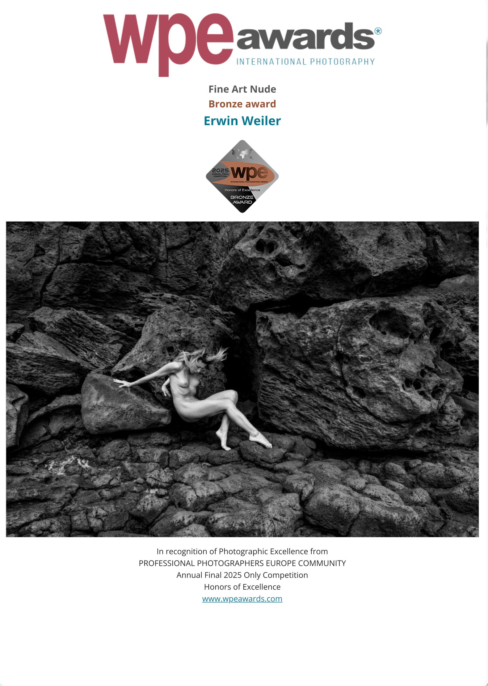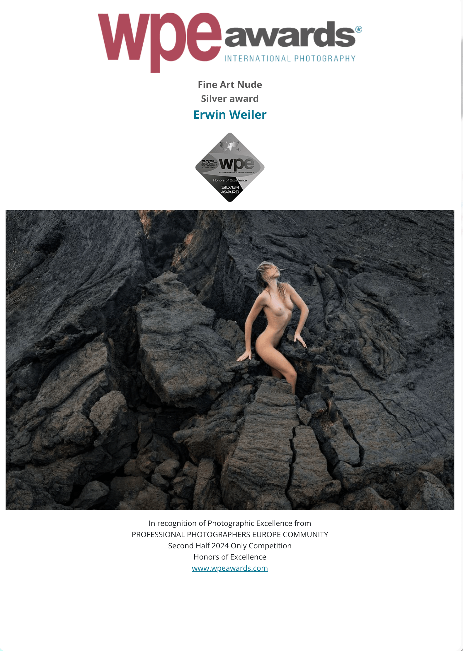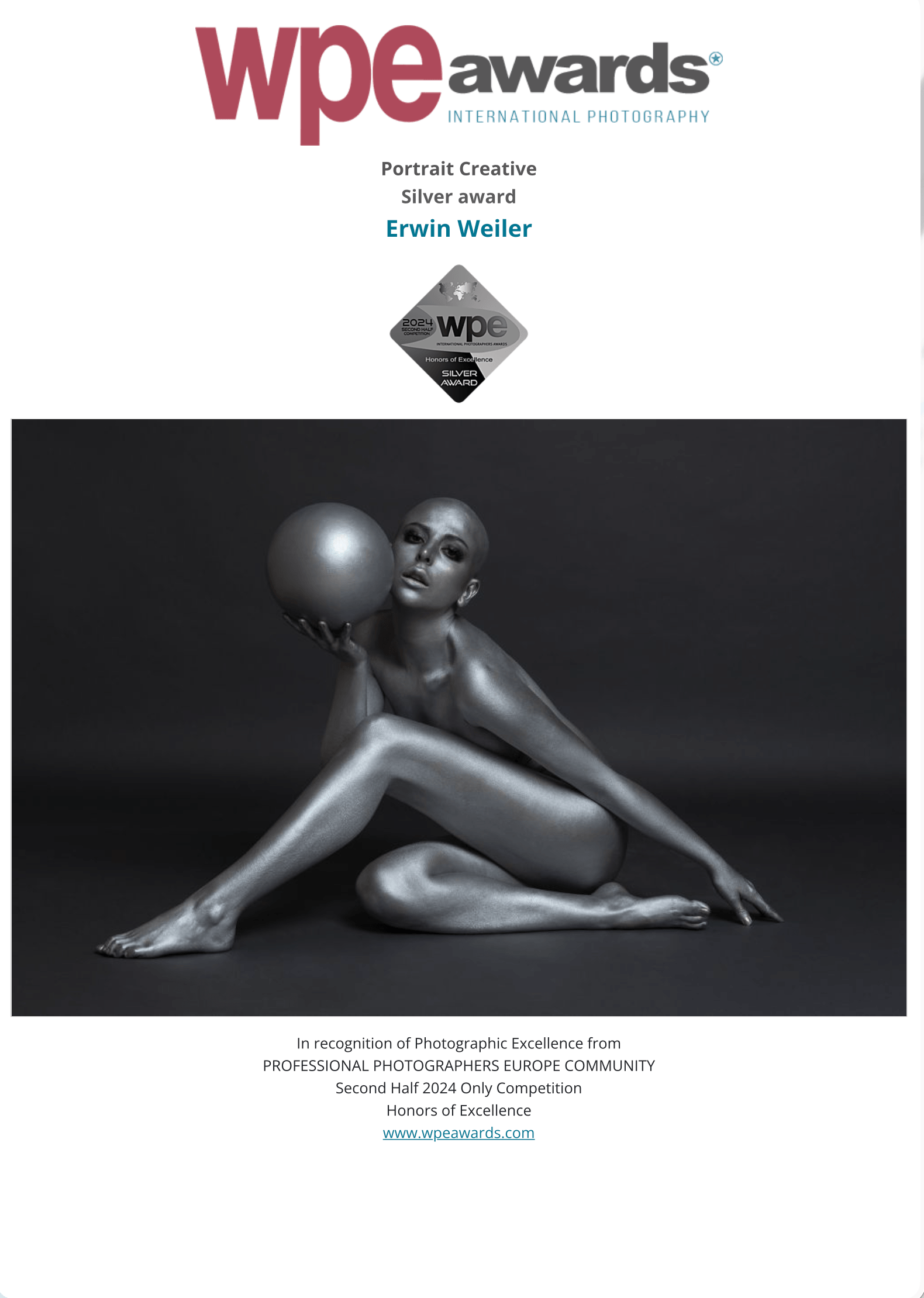 WPE Awards ist ein jährlicher Wettbewerb, der professionellen Fotografen aus aller Welt ab 18 Jahren offensteht. Ursprünglich gegründet von der PROFESSIONAL PHOTOGRAPHERS EUROPE COMMUNITY.